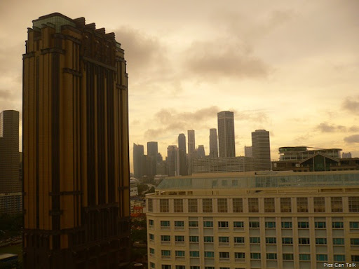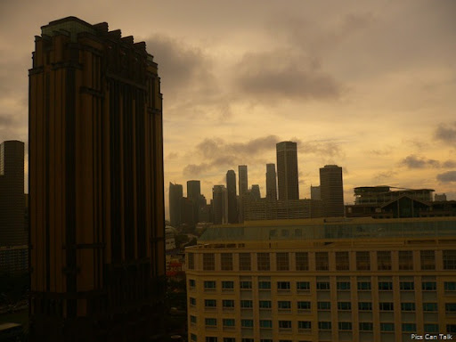 This afternoon I was sitting in my hotel room when I looked out the window and saw a beautiful sight, Singapore at Dusk.
